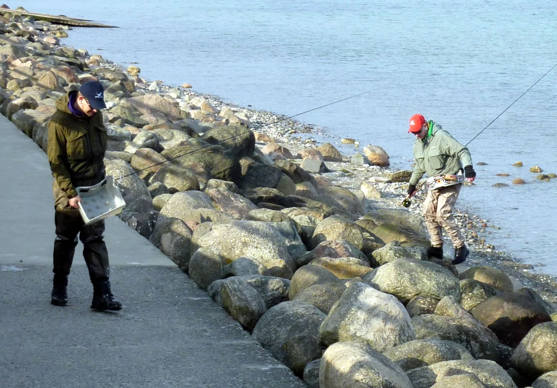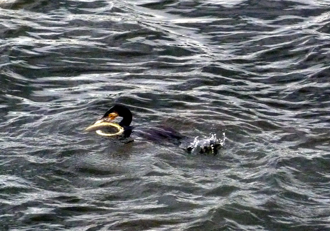 Dicke Wörm op dree Angeln. De Piepser scharp stellt. Nau kann die Waderschlang kamen. Dat is Klook acht. Ik sitt op mien Angelstauhl. Dor .. en Spektakel an dat so stille Wader. An de linke Siet, baven ut de grote Eiken, klatscht en Bünnel Feddern in dat Wader. Dat puhlt sik uteenanner un en Sperber flücht weg. Ünner den Sperber in de lange Krallen en schwatte Vagel. Mi schien, en Drossel. Allens weer in helle Uprägung.