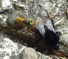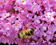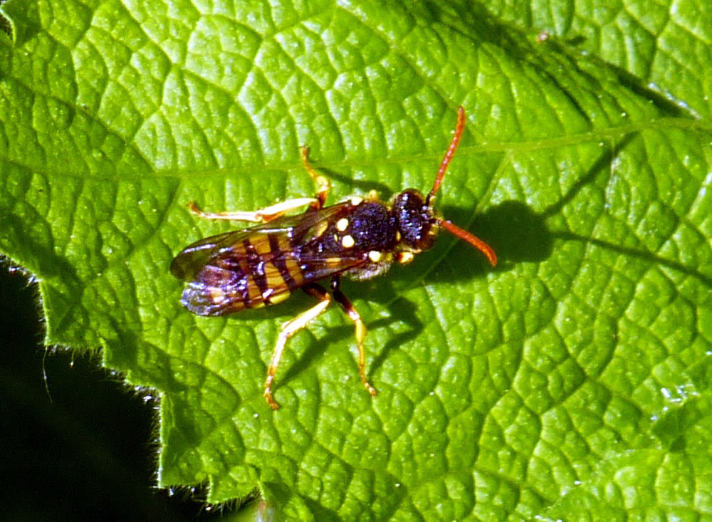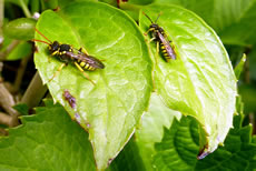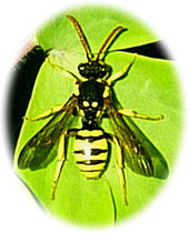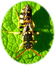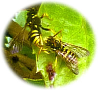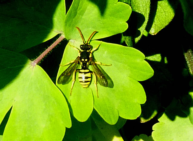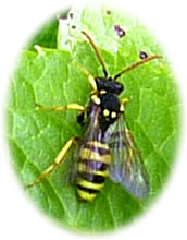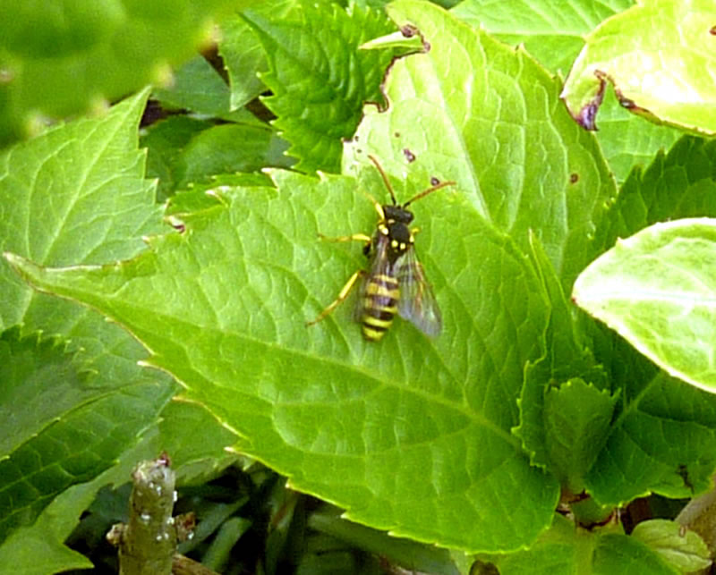 harr meist de glieken In mien Insektenbook heff ik dat Deert funnen. Dat weer en Graafwöps. Un nich blots een! Dor flögen eenige mank de verscheden Planten in mien Blomenrabatt. Un ik kenn se al vun fröher. De weer'n doch schon mal in mien Goorn. Dor harr'n se sik den Lünkendisch utkeken. Nu seten welk up de Bläder vun de verscheden Planten inde Sünn.