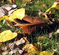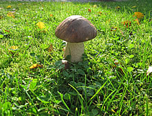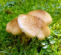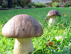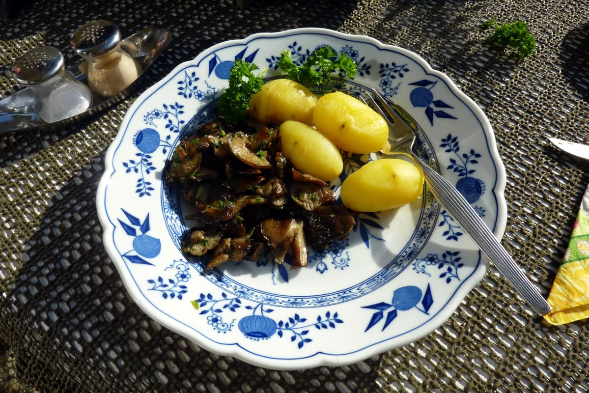 Also, nich dat een denkt, up unsen Rasen liegt Semmel rüm, Rundstücke, Brötchen, nee, up unsen Rasen wasst ünner den groten Barkenboom wunnerhübsche Pilze Poggenstöhl, as vele Plattdüütsche dor ok to seggt. Man ehrlich, een kunn würklich denken, dor liggt en Semmel, also hett mien leef Mann disse Ort Pilz "Semmelpilz" döfft.
