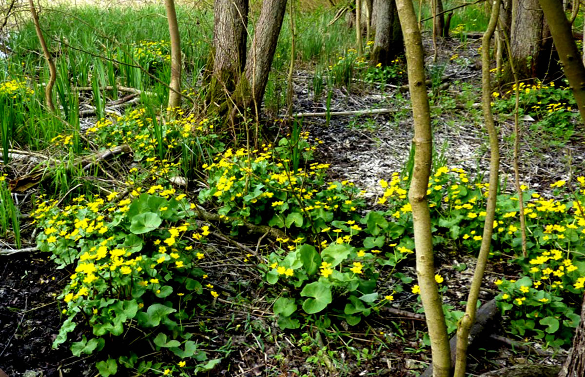 De Raps blöömt un veele Blomen, besünners de Hunnenblomen up de Wieschen dreegt ehr geel Kleed. Lücht mit de Sünn üm de Wett. Dat is en Freud, dörch de Natuur to föhrn. In de Auwoolden blöömt jede Menge Kohblomen. De gefallt mi ümmer ganz besünners. An meist jeden lütten Watertümpel wasst to düsse Johrestiet de Kohblomen. De hochdüütsche Naam "Sumpfdotterblume" seggt uns dat.