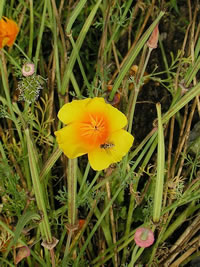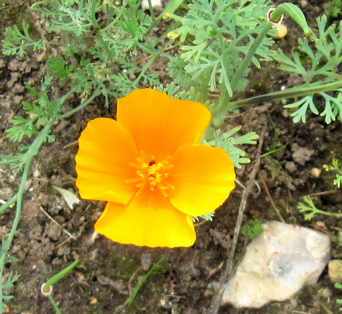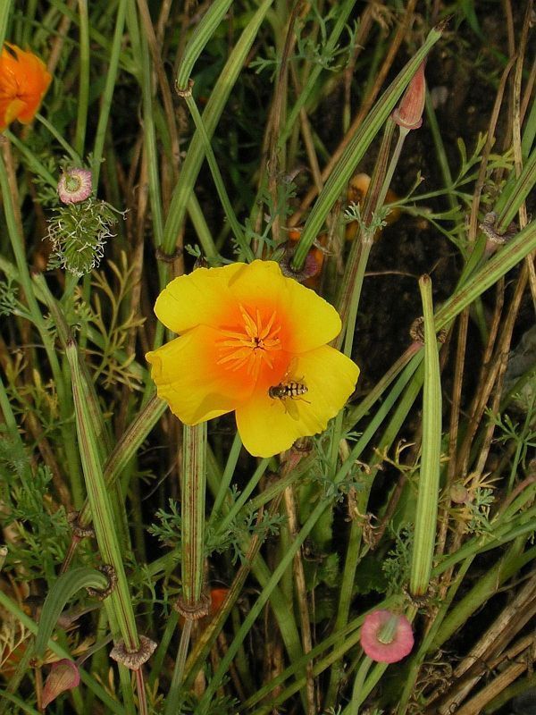 Is dat nich en schöön Naam: Goldmohn! Dat hannelt sik bi dissen Mohn üm den Kalifornisch Mohn, ok Kalifornisch Klappermohn (Eschscholzia california). De is mit unsen Klatschmohn verwandt, höört beide to de Familie vun de Mohngewächse (Pavaraceae). In Kalifornien gellt disse lüchen gelen Blöden as Symbol för den "Golden State". Nördlich vun Los Angeles sall dat dat in'n fröhen Sommer wiede Flacks mit blöhen gelen Mohn geven. En Sommerdag mal, dor lüüch ok en zitronengeel Mohnbloom in unsen Goorn. Wo se herkamen weer, ik weet 't nich. De Blööd weer slicht un ehr Geel steek richtig in 't Oog. Nu heff ik mi vertellen laten, dat een sik disse Sommerbloom ganz licht in sienen Goorn halen kann. Vun'n März an kannst du se utseihen. An'n leevsten wasst de Goldmohn in dröög un mager Eerd. He bruukt aver Sünnenschien. Un wenn he bi di erstmal togangen kamen is, denn saamt he sik vun alleen düchtig ut. Dat duurt blots wenig Weken, bet du de gelen un orangen Blöden bewunnern kannst. Se gaht blots bi Sünnenschien up. Wenn't regent orrer trüb Weder is, denn rullt sik de Blöden as so'n Zigarr in. De hele Plant is wat giftig. För de Indianer is se en Heilplant.