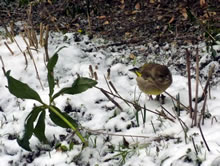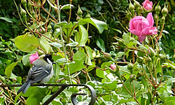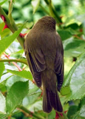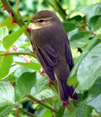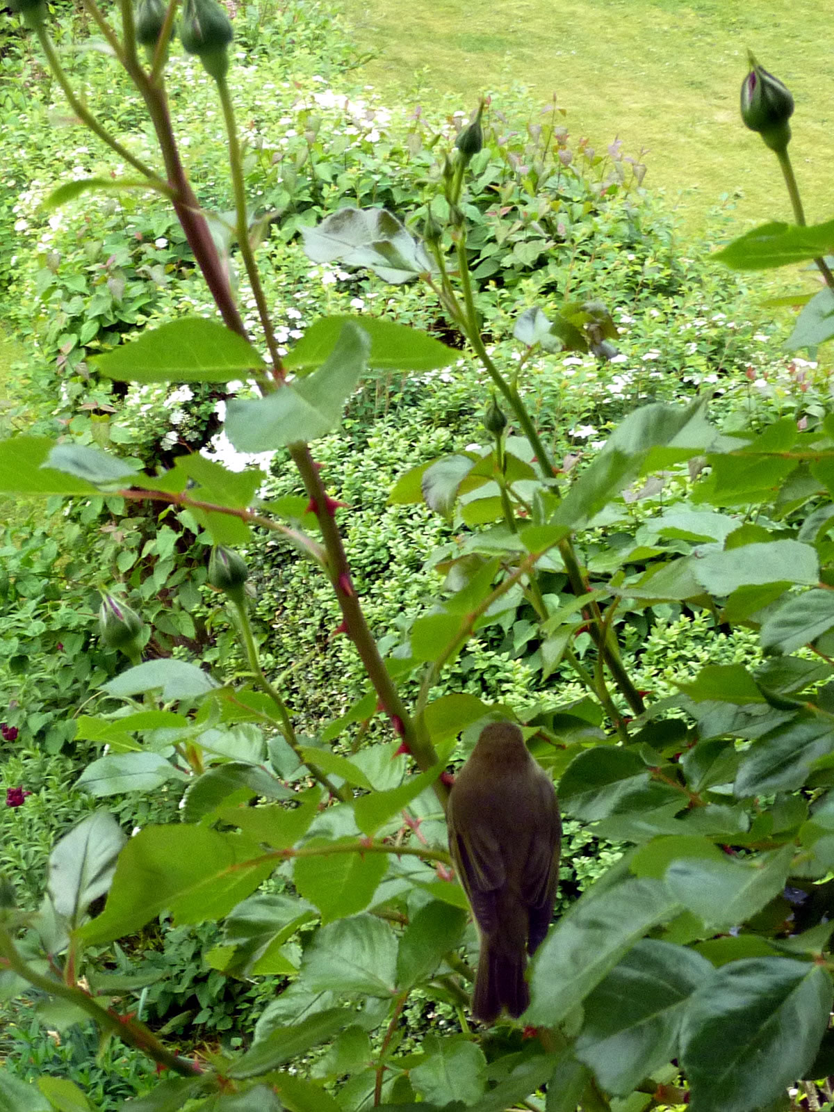 8.6.14 . Pingstvagel! Wat weer dat? Dor harr doch even wat an mien Finster kloppt. Weer dor en Brummer gegen de Schiev flagen? Ik schreck vun mien Arbeit an den PC hoch. Ik keek mi noch üm, kunn aver nix wies warrn un möök wieder. Na'n korten Ogenblick klopp wedder wat gegen de Schiev. Nu güng ik de Saak wat genauer na. Dor seet dor doch en lütten Vagel in den Rosenstock ünner mien Finster. Mit sien plietschen Ogen keek he mi an. Sehg ut, as wenn he mit mi snacken wull. Mit mien Arbeid an den PC weer dat ut. Nu müss ik doch eerstmal kieken, welkeen dor mit mi snacken wull. Dat weer en Grasmückenoort. Sehg ut as de Zilpzalp. Den harr ik annerletzt ok al mal ropen höört. Wull he mi frohe Pingsten wünschen? He leet mi aver nich veel Tiet, dat ik em wat genauer ünnersöken kunn. He flöög dorvun. För mi weer dat de Pingstvagel! En Pirol weer dat nich, dat wüss ik. Den harr ik in de Natuur noch nich to sehn kregen. Un de Pingstvagel mutt ja nich jümmers de Duuv ween mit den hilligen Geist. Ditmaal weer dat villicht mien lütte Gast in'n Rosenbusch. De Biller köönt Se per Klick