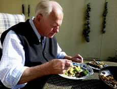 Wi hebbt uns denn de Poggenstöhls wedder goot smecken laten. De weern, dat mütt man togeven, sehr lecker. Annern Moorn keek ik em lachend an: "Du leevst ja noch!" De Biller köönt Se per Klick