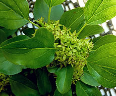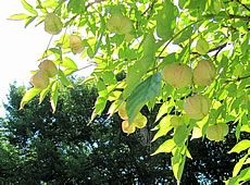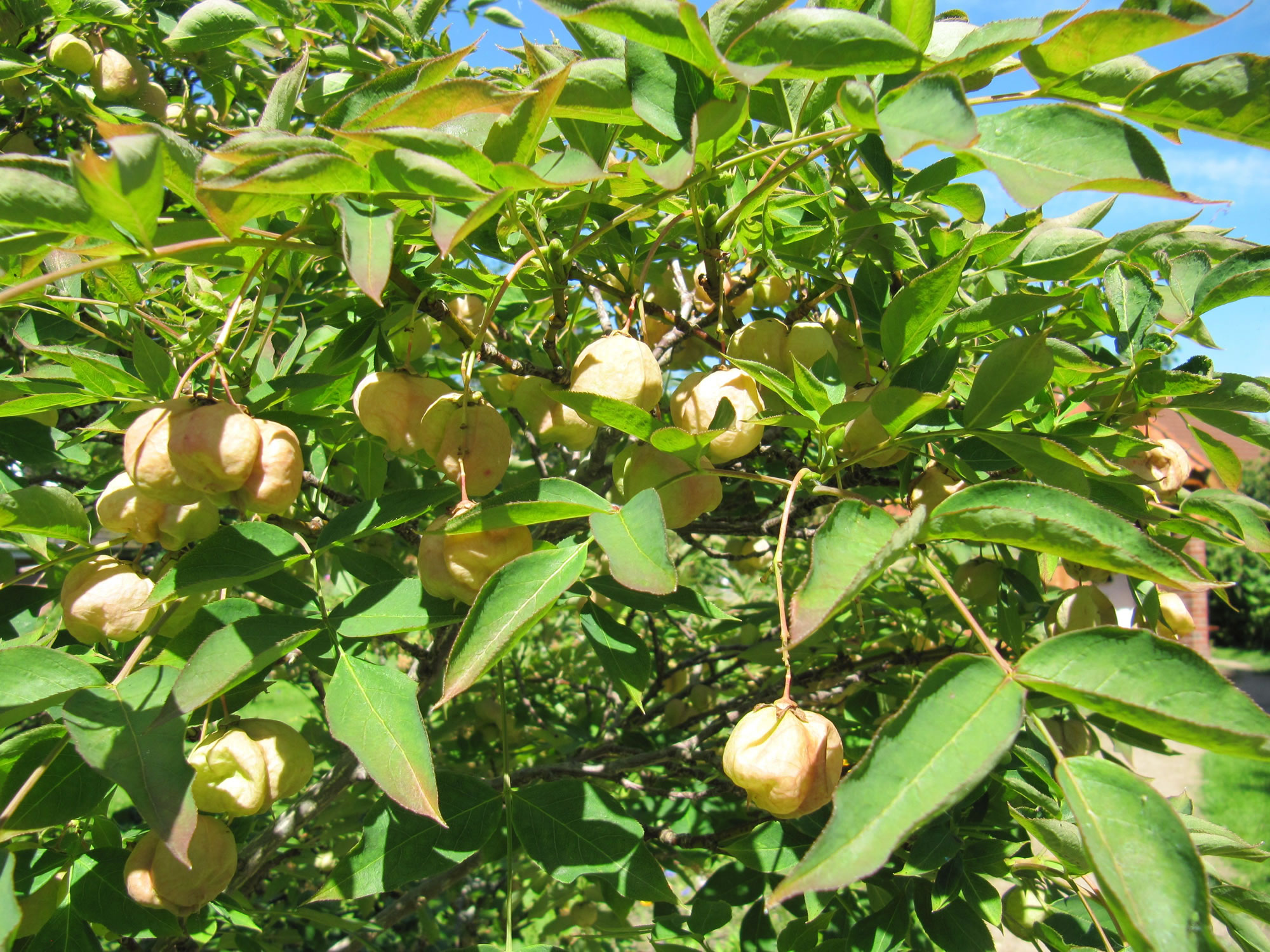 To mien Glück steek en lütt Schild blangen bi in de Erd un dor stünn up: "Pimpernuss. Stapylea pinnata".