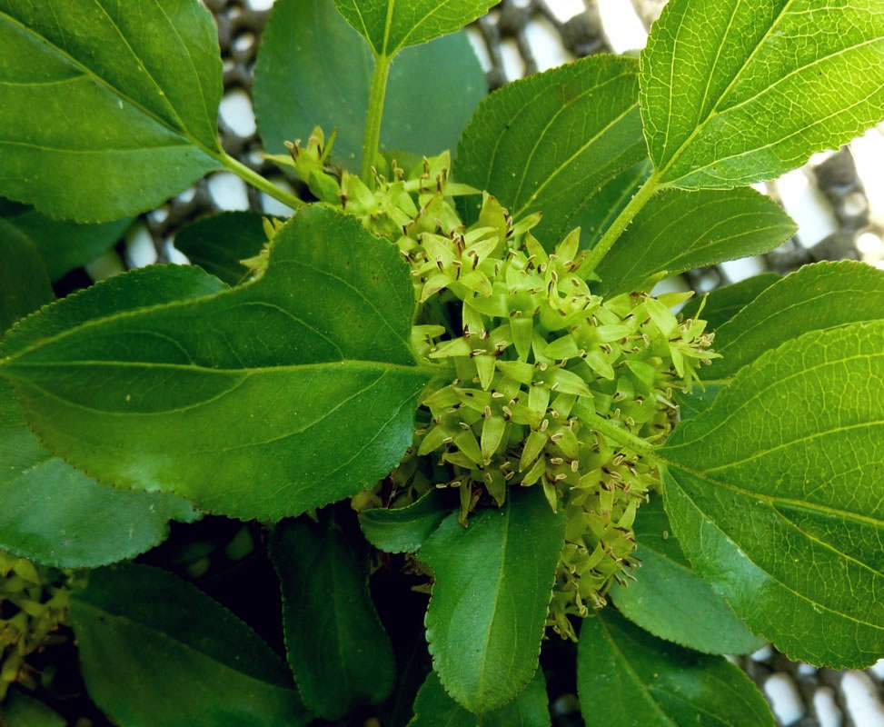 Straat an't Dagslicht. Dichte gröne Bläder to en Rosett