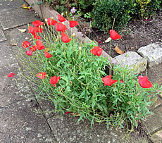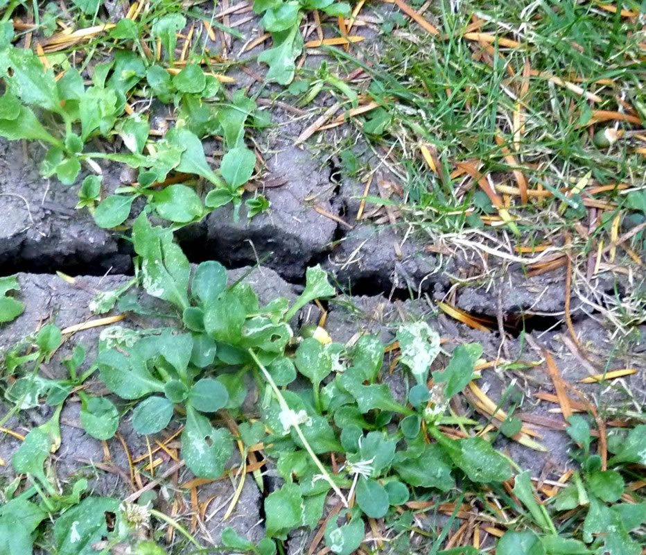 full mi en Plant up. Se wrang sik mank de Steenritzen vun de plastert