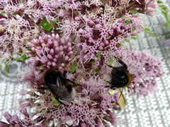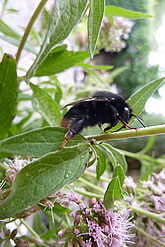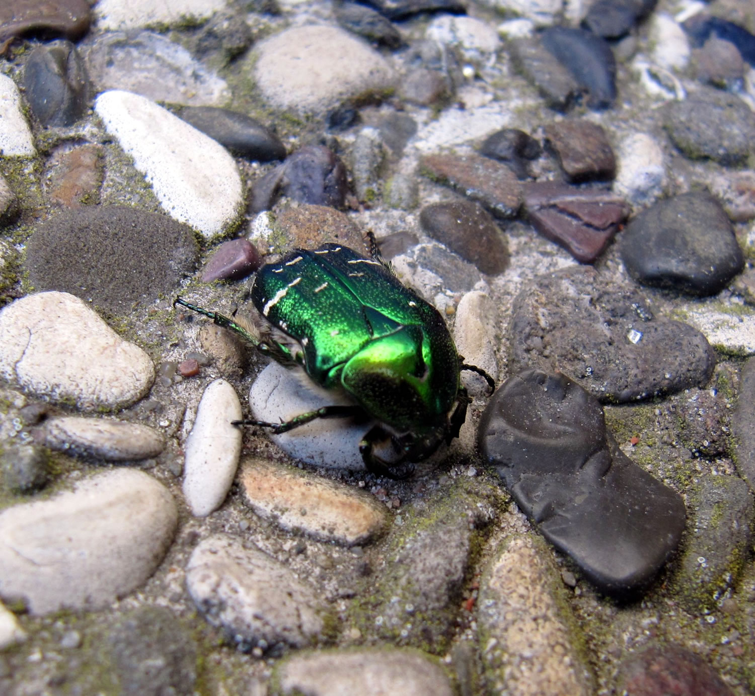 18.5.14 . Graafwöps De Sünn harr mank al de griesen Wulken en Lock funnen. Dat hebbt glieks al de lütten Sünnenanbeter mitkregen. De lütten Deerten summen üm de Hortensie. De groten Bläder harrn warme Placken vun de Sünn. Dat harrn de lütten Deerten glieks spitz kregen. Wat dor up en Hortensienblatt seet, müss ik mi ankieken. Weer