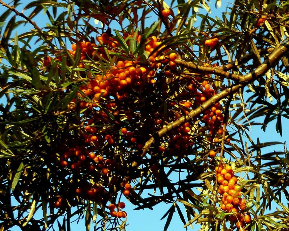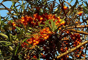 geven hett, denn hangt de swoor sööt Ruuch vun de gären Sanddornbeeren