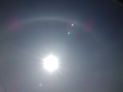 Tennis, Opslag, Ball hooch smieten, Ring üm de Sünn sehn, baven regenbagenklörig, Knipskassen halen, in't Grelle willenlos rinhollen. Hallo Halo! Dat Bild köönt
