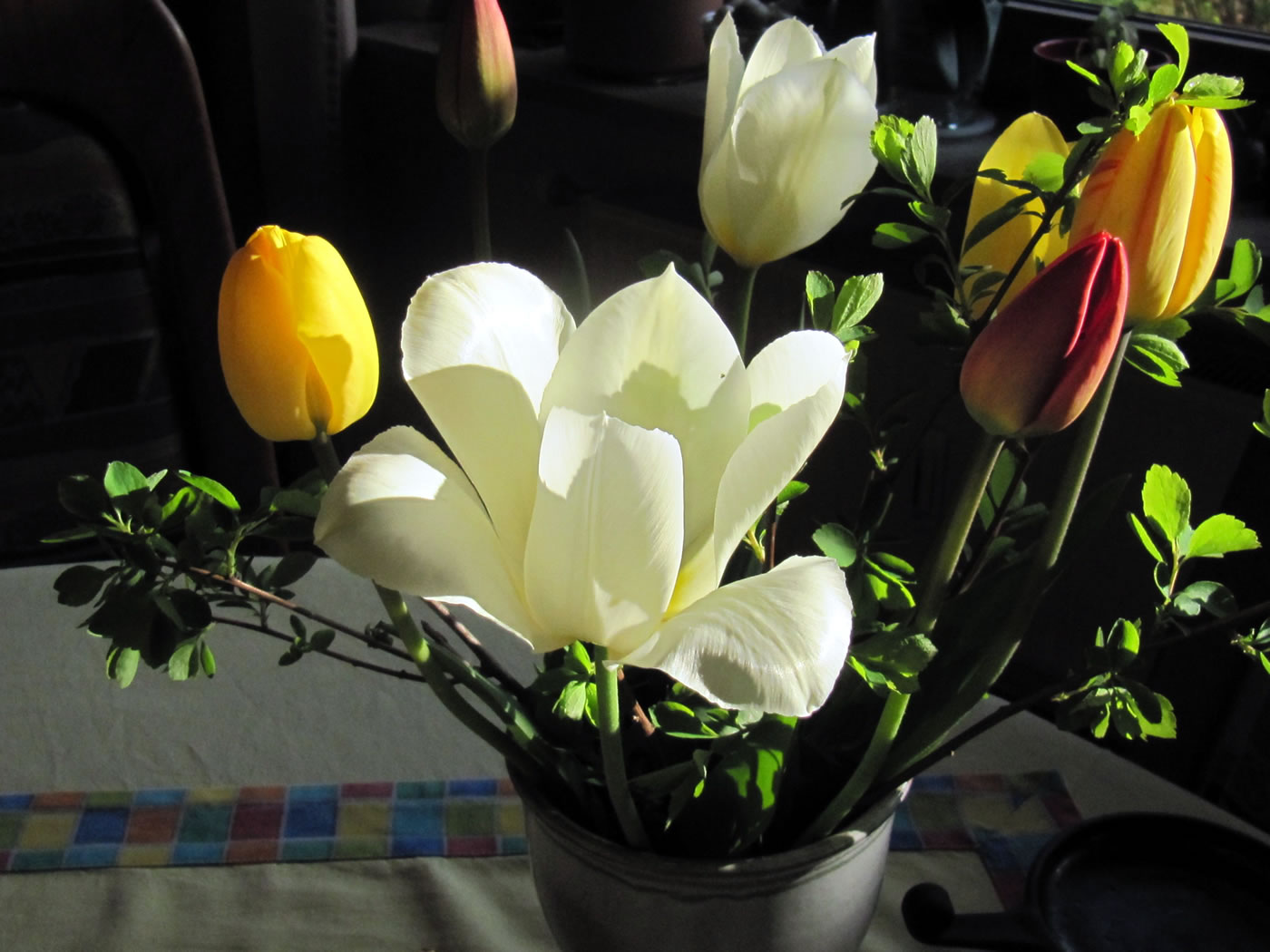 Aver dütt Johr leeg een Stengel mit de schon teemlich groten Knuppen noch up den Rasen. Den heff ik mitnahmen un in en Vaas up de Kökenfinsterbank stellt. Villicht blöhn de Knuppen noch up.