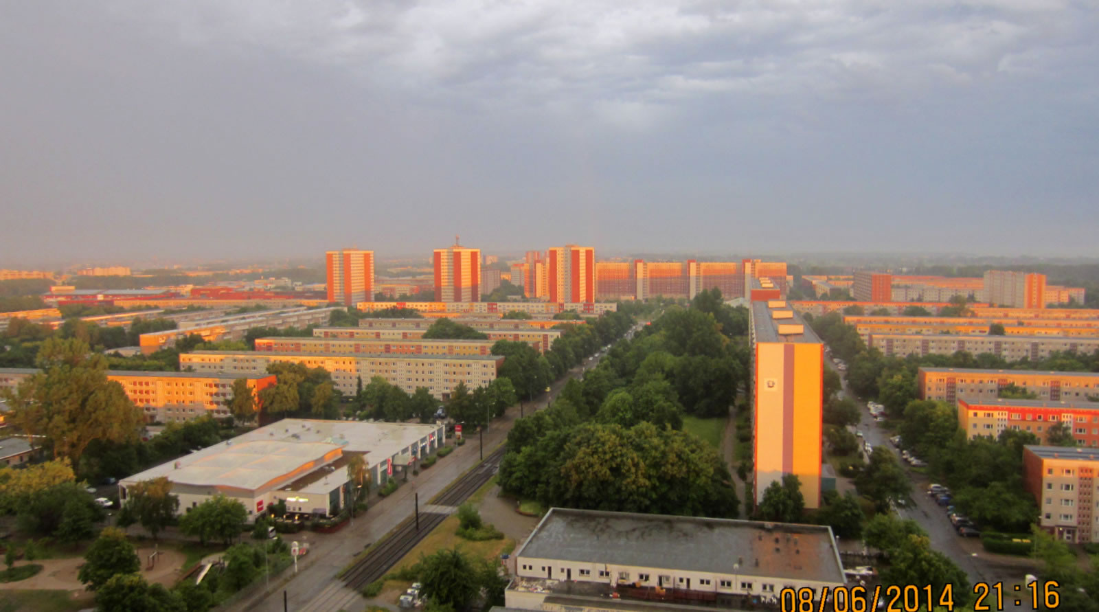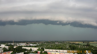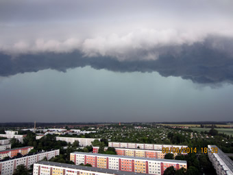 Schwere Gewirrer duern nich lang, heit dat in ein Bauk von dei schönsten Buuernrägeln, un ook steiht dorin: Na ein Ungewirrer kümmt Sünnenschien. Nich ümmer stimmen dei Buuernrägel, heww ick mi oewertüücht. Doch dittmal an Pingsten stimmt. Wi sitten mit dei Familie ann Kaffeedisch tau spären Nahmiddach, laaten uns denn Kauken, Kaffee, Tee un Kakao gaud schmecken. Jemand uut dei Rund steiht mal up un kiekt uut Finster na Süden hen, kümmt trüch un röppt: De Himmel oewer Rostock is ganz swart! Wi belaten dat dorbi un räden wierer, doch na teihn Minuten seihn wi in Westen denn swarten Himmel mit ein gewaltich Wolkenwalz in Halwkreis langsam up uns Hochhuus taukamen. Bit nah Warmin hen trecken die Wolken un verdüüstern ganz allmählich dei Landschaft, blots ganz ann vörn an Enn sünd noch helle Reste vonn Sünnenschien tau seihn.