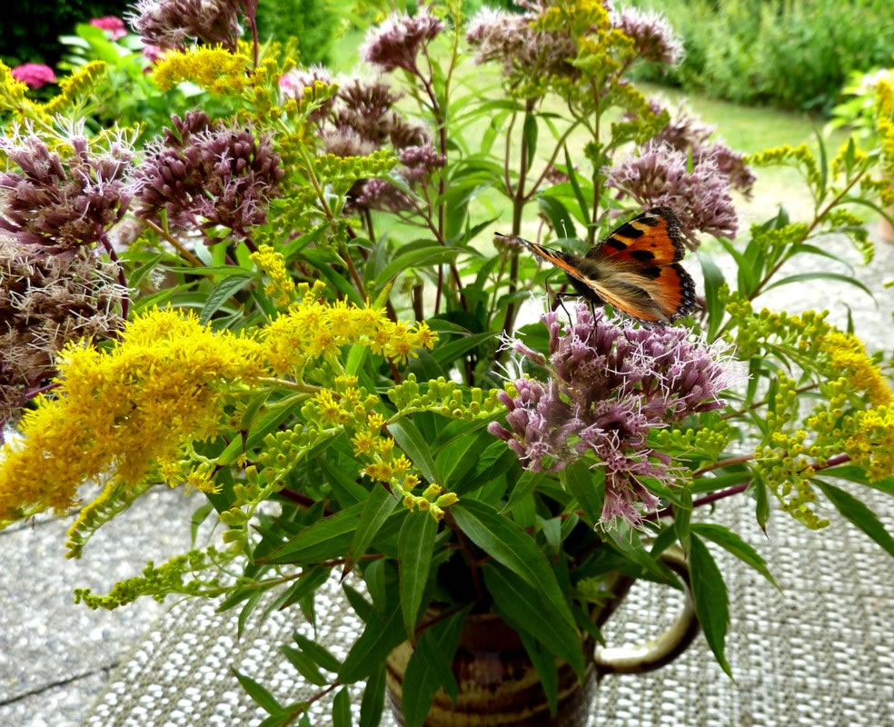 se vun tohuus De Paus up de Bank hebbt wi richtig genaten. Wat hebbt wi allens höört un sehn! De lütten Vagels jubileern, Bottervagels gaukeln in Sünnenschien hin un her un Hummeln summen vun Bloom to Bloom. Dat weer en richtig lütt Beleevnis. Wat mööt wi grote Reisen maken, wi hebbt doch alles hier.