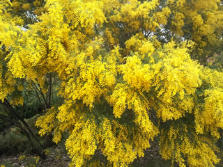 Mien australisch Fründin Sigrid vertellt af un an ja, ik kann wohl seggen, se schwärmt vun en Struck orrer Boom, de över un över vull vun gele Blöden sitt. Disse Busch steiht överall bi ehr in Gegend, ok in ehren Goorn. Se hett Freud dor an. Se nöömt den Boom "Wattle". Ik heff nu beten in mien Böker blädert un ik heff em funnen,