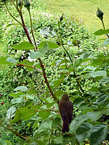26.5.12 . .De Nachtigall singt Tau'n Anhören: Hier klicken Ik seet buten up uns Terrasse. De Sonne weer graad ünnergahn. De westen Himmel wies noch wunnerfiene pinke Farven. Dat weer meist dodenstill hier buten, keen Windhauch weer to marken. Die blöhen Strüker ümrüm parfümeern de Luft mit sööt Duft. So kort na Sünnen-Ünnergang markt een de Düfte noch mehr as an'n Dag so kümmt mi dat vör un dor ganz besünner de betäubend Duft vun de Flederblöden. Un denn füng miteens de Nachtigall dat Singen an. Se seet dicht bi mi bi in'n Holunnerbusch. Se süng so schöön so innig all ehre depen un hogen Töne, dormank ok mal sowat as en Zirpen un en Knarren. Ik höör lange wehmütig Tonfolgen un ik waag kuum Luft to halen un ik töövte. Dor müssen doch noch de Triller kamen de ik jümmers Kanarien-Triller nenn. Un denn kemen de Triller... Also, wat Schöners kann de Minsch nich beleven, tominnst de nich, de Anke heet. Dat Bild köönt