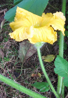 Man noch liggt he ja in'n Goorn, de dicke gele Kürbis,