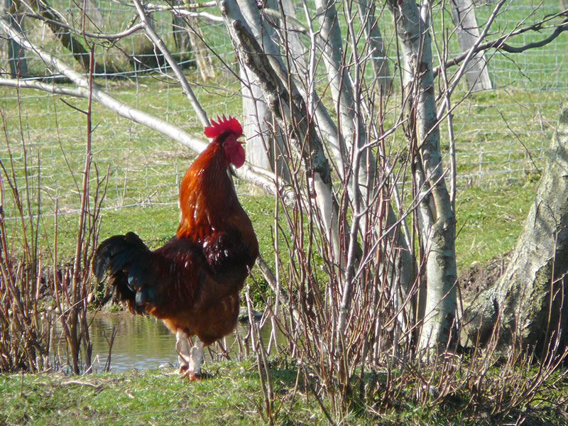de grote bunte Hahn un de brune Gluck, bleven up den Hoff. De töven nu seker