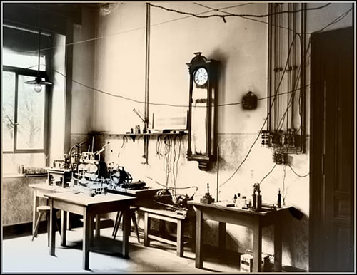 Dat Bild baoven wiest Röntgens Labor. Dörch eine äöpen Dörn kann man in einen wat grötteren Ruum van rund 6,0 x 4,5 m kieken. Dit was dat Laboratorium, wor binnen dei Forschkung passeierde. Dorüm werd dit duurhaft einen geschichtlicken Wert hollen. Dit Laboratorium spreck für sick sülws. Röntgenstraohlung giff et nich blots bi'n Dokter in dei Praxis, sünners uck in dat heele Universum. Wiel dei nich bit up dei Eern daol kummp, kunn man dei eiers mit moderne Satelliten finnen. Affstraohlen käönt dei blots eine Million Graod heite Neutronensterne un Gaswolken.