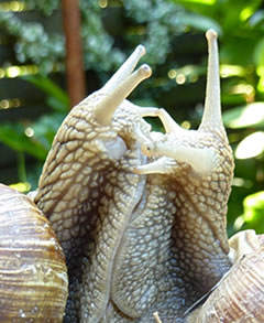 De Snicken sünd Zwitter. Beid köönt Eier leggen, un beid sünd mit enen Leevpiel utrüüst. De Englänner seggt "love dart" dorto. Wenn de Snicken Leevde wüllt, scheet se den Piel in de Footsahl vun den oder de Utsöchte. De is denn praat, Leevde to maken. An de rechte Koppsiet wies sik denn ehr'n Begattungsdeel.