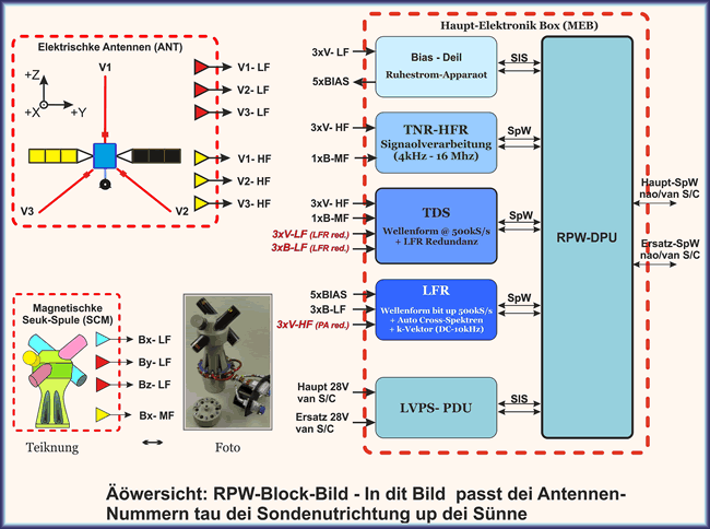 Dei thermischke Ruusen- un Hochfrequenzempfänger TNR-HFR Dit System faotet dat ümgäben Elektronenvolk dör dat Mäten van dat lokaole Ruusen bi dei Plasmafrequenz un giff Künne äöwer dei Sünnen-Radio-Emissionen wieder weg. Dortau läwert TNR-HFR bi ein verschiedenet Tied-Uplösen elektrischke Leistungsspektren van 4 kHz un magnetischke Leistungs-Spektral-Dichten van 4 kHz bit 500 kHz. Dat BIAS läwert einen konstanten Strom an dei elektrischken Antennen. So kann dit System naue elektrischke DC/LF-Feld- un Satelliten-Potential-Daoten faoten, wobi dei Impedanz in dei Plasma-Kopplung verminnert werd. Dat SCM is ein induktiven Magnetsensor, dei ut einen Karn van ein Hochpermeabilitäts-Materiaol (Ferrit off Permalloy) bestaiht. Dorümme werd einige Duusend Windungen un eine Sekundärspule mit ein poor Windungen wickelt. Dei SCM sitt an den langen Instrument-Arm. Disse Unnersysteme häbbt tausaome eine DPU, dei Befähle,