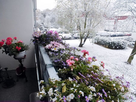 to sülvige Tied an de Fodersteed op mien Balkon. Ik stünn