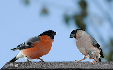 De Gimpel weern wedder dor! Wat scheun! Miene Doompfaffen! Bit annermaal grööt Se Ehr Sünnschienkieker.