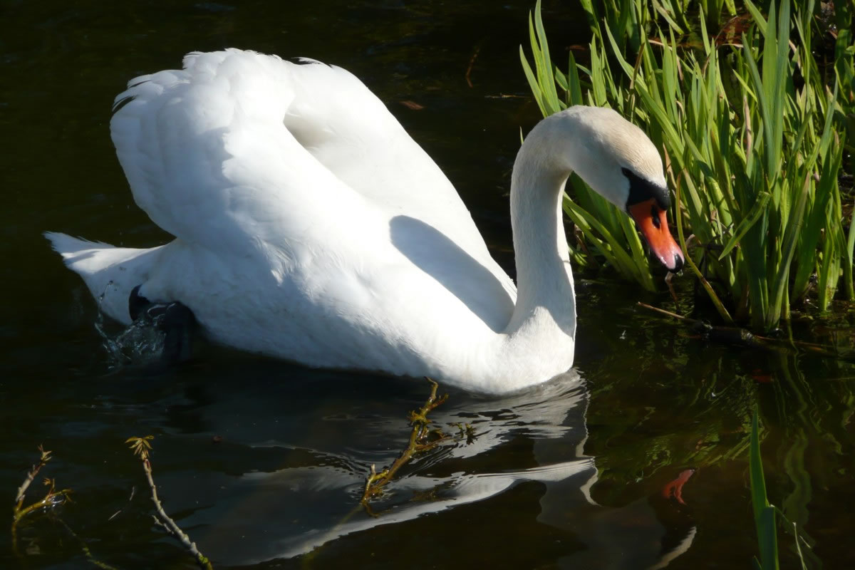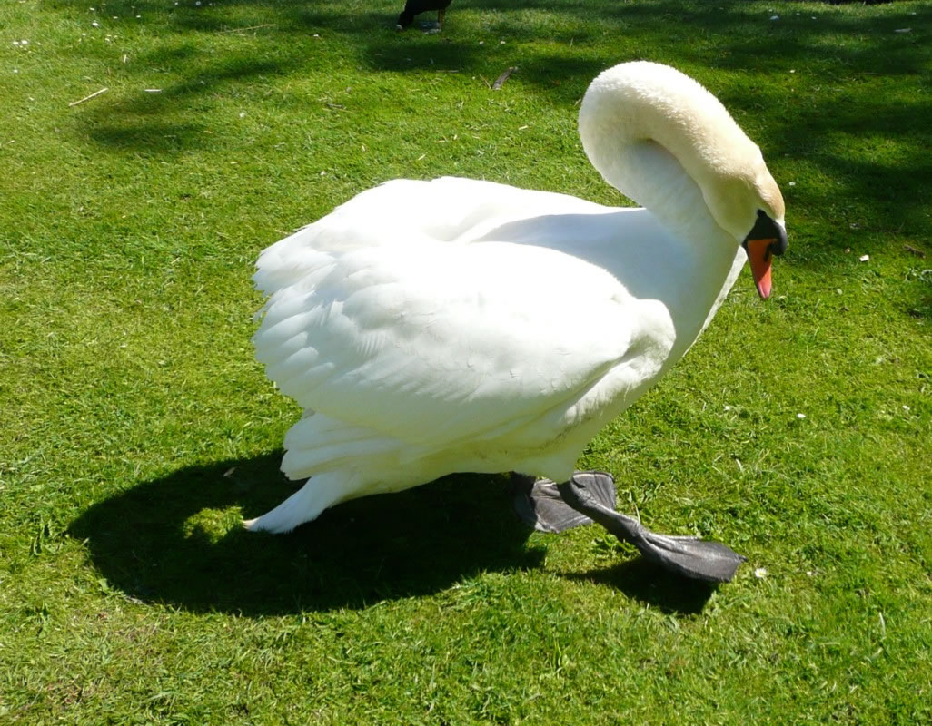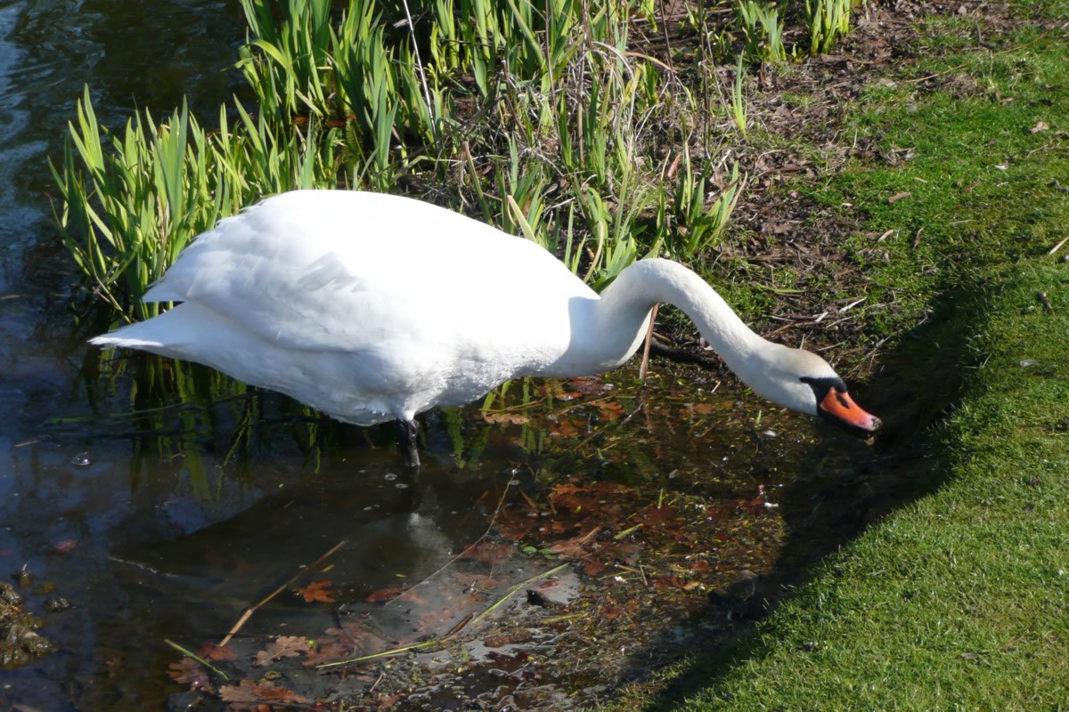 Küken al dor. De Aanten trocken mit en groot Dor harr ik aver mien Reken ahn Swaanrich maakt. Mit eens keem he an Land un glieks up mi to. Zisch mi an un sloog sien groten Flünken üm miene Been. Mi wöör angst un bang un dat dünn ok richtig dull weh. Ik kunn mi gor nich so gau ut'n Stoff maken. Ik reep na mien Mann üm Hölp. Aver he wöör ok vun den Swaan attackeert. Sowat harrn wi noch nich beleevt! Wedder to Huus, heff ik eerstmal mien Been bekeken. An annern Dag