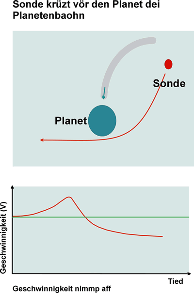 Eine Sonde, dei dör ein Schwunghaolen (Swing-by) affbremsen schall, kummp van achtern an den Planet ran, flügg an üm vörbi un krüzet siene Ümloopbaohn aower vör üm. So flügg dei Planet bi den minnsten Affstand up dei Sonde tau. Dorbi werd dei Sonde gägenäöwer dei Sünne affbremset.