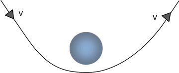 Schwunghaolen in den Weltruum vun Ludgerd Lüske Dat englischke Wort Swing-by uck Fly-by, Slingshot, Gravity Assist (GA), Schworkraftümlenkung, Gravitationsmanöver off Vörbieschwung-Manöver neumt meent eine Methode in dei tüschkenplanetore Ruumfohrt, bi dei ein relaotiv lichte Ruumfleiger (t. Bispill eine Ruumsonde) duune an ein grootmassiget Objekt (t. B. ein Planet) vörbiflügg. Dorbi ännert sick Richtung un faoken uck dei Geschwinnigkeit van dei Sonde, wobi dei Planet dör siene groote Masse nich würklich van siene Baohn affkummp. Ut einen grooten Affstand seihn, gellt för dit Tausaomedraopen dei Gesette van einen elastischken Stoot.