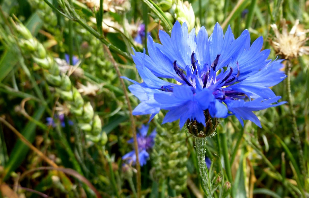 De Roggenbloom is dörch ehr upfallend Faarv ok in vele Symbole to finnen. Königin Luise hett se to de "Preußische Bloom" maakt. För Kaiser Wilhelm den I. weer dat de Leevlingsbloom. Hüüt noch snackt wi bi en bestimmte blage Faarv vun "Preußisch Blau". So en smuckes un reines Blaag finnt wi kuum bi en anner Bloom. Wat schöön, dat se hüüt wedder dörch dat Ackerrandstriepenprogramm antodrapen is. |