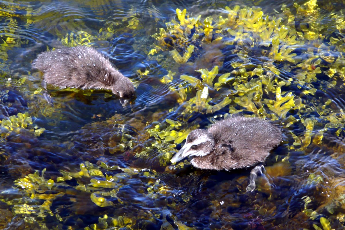 Aantenküken wies. Dat weern wohrhaftig junge Eideraanten! Dicht