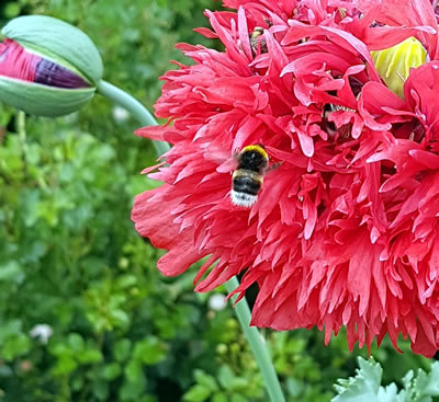 Trüch kaamt Se denn mit den Zurück-Knoop op de Browser-Symboolliest. Nu fleegt de letzten Hummeln un seggt den Sommer Adjüs. Wi seht de rundlichen propperen Deerten sacht an uns vörbibrummen un erinnert uns: Dat ward seggt, de sworen Insekten köönt eentlich gor nich flegen! Naja, egentlich stimmt dat ja ok. Sülvst hooch acht'te Wetenschoplers rievt sik de Ogen, wenn so en Brummer an jüm vörbiflüggt, wo doch all bither bekannten Formeln un Bereken, de to'n Bispeel för Fleger gellt, dorgegen spreekt. Egentlich köönt Hummeln gor nich noog Drift mit jümehr Flögelslag togang kriegen, dat se in'e Luft blievt egentlich! Aver Hummeln weet dat anschients nich un dorüm fleegt se eenfach los! De Effekt is avers nich rein psycholoogsch, denn sünst kunnen Minschen dat ja ok versöken. De Hummeln beweegt jümehr Flögel nich eenfach op un daal, sünnern hen un her also vun achtern na vörn un trüch un in Krinken. De TÜV hett sik dormit befaat un rutfunnen, dat de Frequenz 200 Hz is, also 200 Flögelslääg per Sekunn. Mit düsse Bewegen maakt se en Luftkrüsel, de jüm Drift gifft un jüm wunnerbor flegen lett. Un to'n Glück köönt se flegen, denn se sünd wichtig för dat Bestöven vun Blöten, sünnerlich in'n Fröhjohr, wenn dat för de Immen noch to koolt un noch nich kommodig is. Biller: Angelika Cordes 8.9.2024
