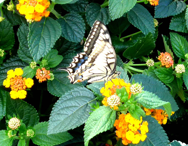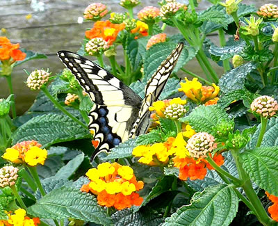 Ik harr Glück, de Swulkensteert harr sik dat Wandelröschen in mien Goorn utsöcht. Ümmer wedder sett he sik up de Bloom.