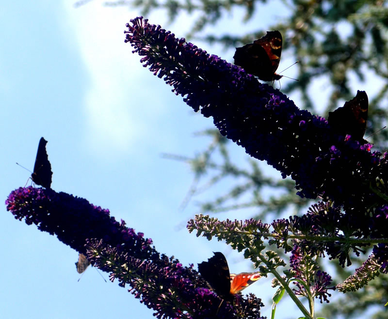 Bi mien Naver nevenan seten up den Schmetterlingsboom siet twee Daag veel ünnerscheedlich Bottervagels. Besünners veel Pfauenogen kunn ik sehn. Wat dat wull up sik harr, dat se sik nu eerst sehn leten? Leeg dat an den Warmwederinbruch? Dor müss ik doch mal rümfragen, ob de annern Navers dat ok mitkregen harrn.