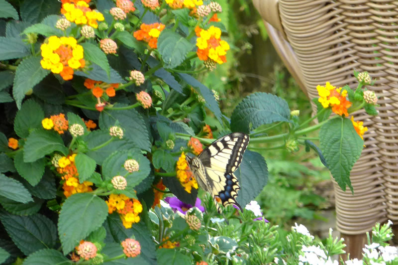 An 20. Juli harr ik denn morrns en lustig Beleevnis. Up de Trepp flöög mi wat Düsteres üm den Kopp, en Bottervagel! In de Stuuv flatter he glieks an't Finster. Dat weer ja en smuck Tagpfauenoog. He wull ruut. Gau haal ik en Glas ut de Köök. In dat Glas heff ik em na buten bröcht. Dor weern noch mehr Bottervagels. De seten up den frisch upblöhten Phlox. Na, dat geev ja doch noch mehr Bottervagels.