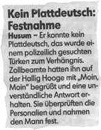 Düsse Websiet... ...is keen Museum. Dat dreiht sik hier üm Saken vun hüüt. Dat is in en levige Spraak verfaat; un de Spraak is Nedderdüütsch, beter bekannt as Platt. Plattdüütsch in't Internet dreiht sik faken üm sik sülvst un üm Vertelln ut verleden Tieden. Söökt een wat to Themen vun vundaag, denn gifft dat dar nix op Platt. Man woso schall dat Plattdüütsche in de Literatuur-Eck sitten blieven? Wat wi to seggen un to fragen hebbt, wüllt wi ok op Plattdüütsch seggen un fragen. Se köönt dat hier ok doon. Seggt Se ehr Menen to de Websiet, mailt Se us Ehr egen Bidrääg to de Flacken, de Se intresseert, un maakt Se mit! Alleen wüllt wi nich blieven, un alleen kann dat hier ok keen lebennig Siet warrn. Leve plattdüütsche Websurfers, kaamt Se ut SeEhr Snickenhüüs! Dat maakt Spaaß. |
