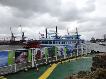 Nadem ik Sünnavend Middag mien lecker Grööntüüch-Pott mit Mairübchen, Tomate un Zippel, wat ik op'n Wochenmarkt inköfft harr, mit een Tofu-Würstchen un natüürlich frische Petersill opeeten harr, bün ik glieks mit 'n Bus un de U-Bahn na de Landungsbrücken fohrt. Dor weern al 'n Barg Lüüd, un an de Landungsbrück