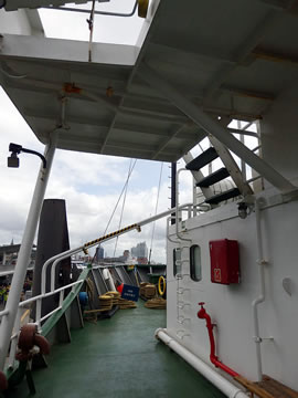 Buten weer en Döör: To be closed at sea. De Döör harr uk gode Dichtung un en Barg Griffe. Dor warrt di klor, dat dat op See jümmer heel eernst is! Op düsset Foto is noch eenmal de Utsichtsturm to sehn. As ik wedder vun dat Schipp gung, heff ik dat Glieke seggt as düsset Schild in den Frachtruum! Greenpeace hett uk 'n multimediale Duurutstellung in de Hafencity, Hongkongstraße 10. Natüürlich köönt Se bi'n Kulturlotsen wat doröver lesen. Ankieken lohnt bestimmt! Jüst as düsse Besöök op den Iesbreker.