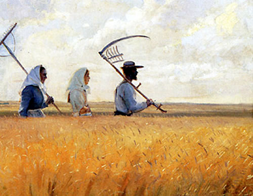 Tau dei Tiet geef noch kein monogerme Räuwensaat, so dat Hacken, Vertrecken, Rundhack usw. normal wiern un wi Kinner mössten mit ran. Tau Austiet wür tau mien Kinnertiet dat Kuurn noch mit dei Seis anmeiht, Vadder vörwech un ik taun Upbinnen vonne Garwen achteran. Låters harr hei 'n Grasmeiher mit Handaflåch, man mösst dei aflecht Garf blot noch upbinnen. Denn keem't Hocken, würn dei Hocken dörch Rägen tau natt, denn mössten's ümhockt warden, denn keem't Infohrn un up Miete setten, denn keem dei Wannerdöschkasten un man künn all anne Austköst denken. Œwer bald wier Tüffelsammeln un Tüffelrummeln ansecht, denn mössten noch dei Räuben von'n Acker un dat Winterkuurn all wedder inne Ierd.