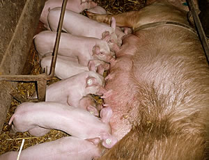Up unsen lütten Buernhoff geef dat up'n Hoff näben dat Piergespann, por Käuh, Schwien un Schåp ok Häuhner, Gäus, Aanten un Kuhnen ok noch Kaninken un Meerschwien in'n Burken...Un mit dat lütt Inkåmen künn man utkåmen un sik so inne Nåkriegsjohren œwer Wåder hollen. Dat wier för Stadtminschen nich ümmer so licht, sei güngen bi'n Buern up'n Lann hamstern, hemm' dat ein un anner gaude Stück gägen Ätenworen intuscht. Un geef 'n Buer sik in ehr Ogen bäten knickerig, denn wür ok mål secht, dei lecht sik sienen Stall mit Perser un Berber ut un denkt nich an'n Hunger vonne