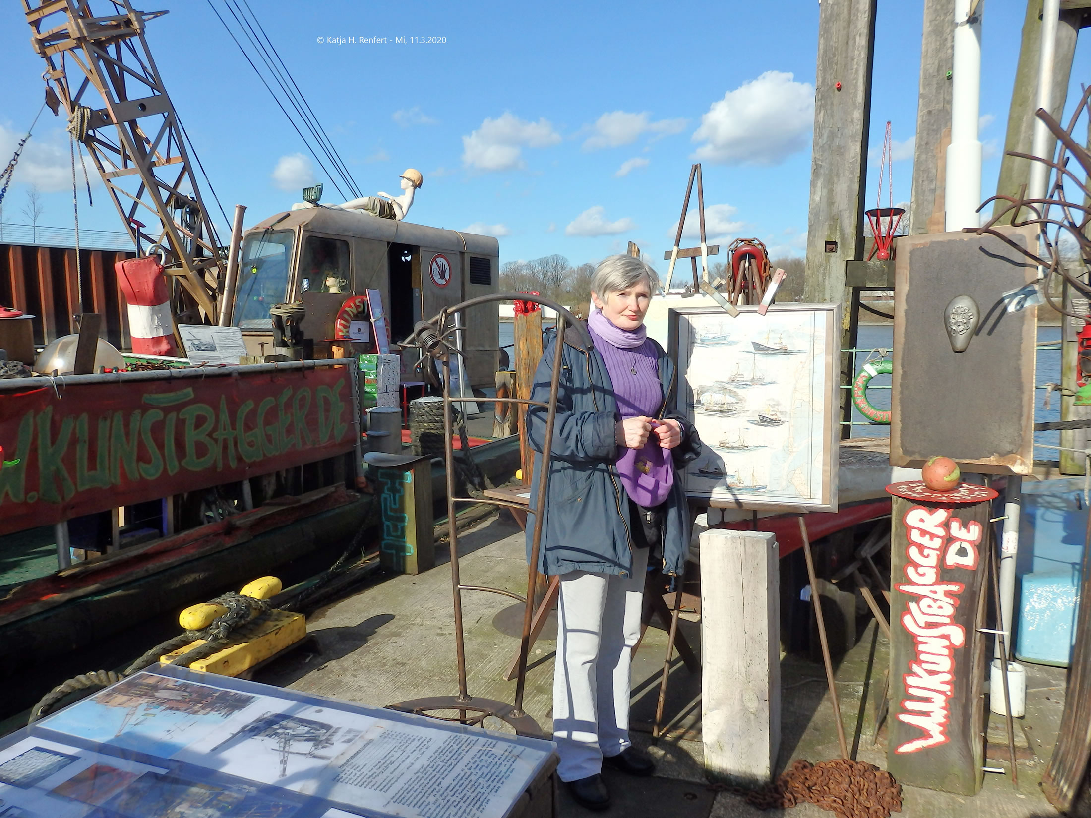 Arie antohöörn...? In November 2019 heff ik mien tweetes Book veröffentlicht hier köönt Se beten Proov lesen , un wieldem dor uk en Wandbild mit twee danzende Fruunslüüd binn is, schull ik dat bi de Vernissage in de "Galerie IMBA" vörstellen, wo Silke Frank den 2013 storven Künstler utstellen wull. Nix Corona An 2. Mai wull ik denn mien Book bi mien Fründin Bine, de ik siet 2008 kenn, op ehrn "Kunstbagger" vörstelln