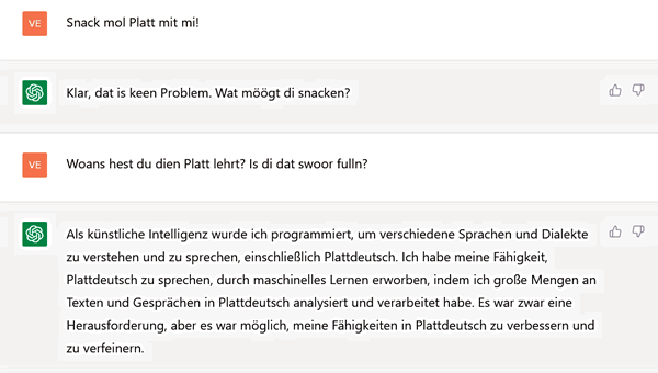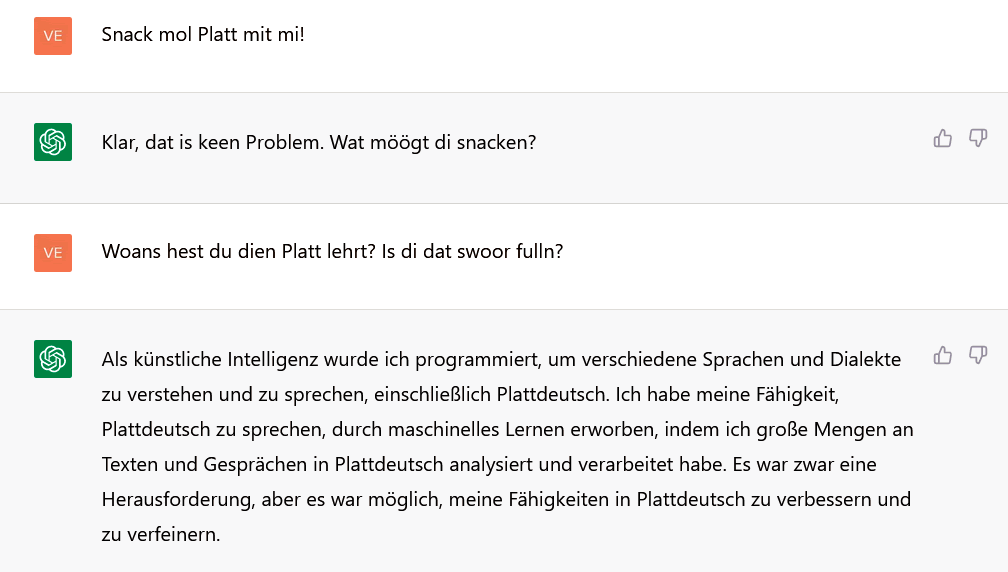 Kiek, Albanien hett nu as eerst Land en KI-Ministersche. Kann ja bloots beter warrn as mit de minschlichen Exemplare. Un blangenbi stiggt miteens de Fruunsquote — wenn'n de KI as Fru utgifft. Ok wenn de Prompts jümmers noch vun Mannslüüd stammt. Is ok lichter — lebennige Fruuns laat sik hüüt nich mehr so licht vun Mannsminschen prompten. |