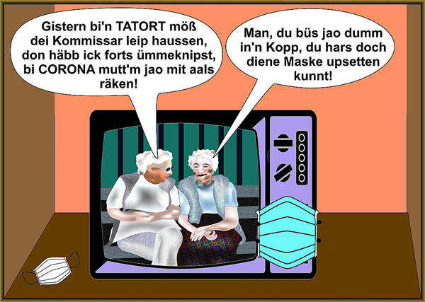 3.1.26 ...Opklaarn to Niegjohr Un wieder geiht't mit Zynismus! De USA klaart to Niegjohr ehrn "Achterhoff" Latienamerika op un sett mal kort en anner Regime in Venezuela in. Man "Krieg"? Nee, natüürlich is dat keen Krieg, wenn dat US-Militär dor bombt. Dat weer ja gegen US-Recht un Völkerrecht, an de US-Verfatensorgane vörbi, un Donnie will doch den Fredensnobelpries, un överhaupt geiht dat bloots gegen den Drogensmuggel! Dorwegen is de Angriep op Venezuela nix anners as en (nu bitte all in'n Chor:) militärische Speziaal-Operaschoon! Vun Putin lehren heet even siegen lehren weet sien ieverigste Schöler. |