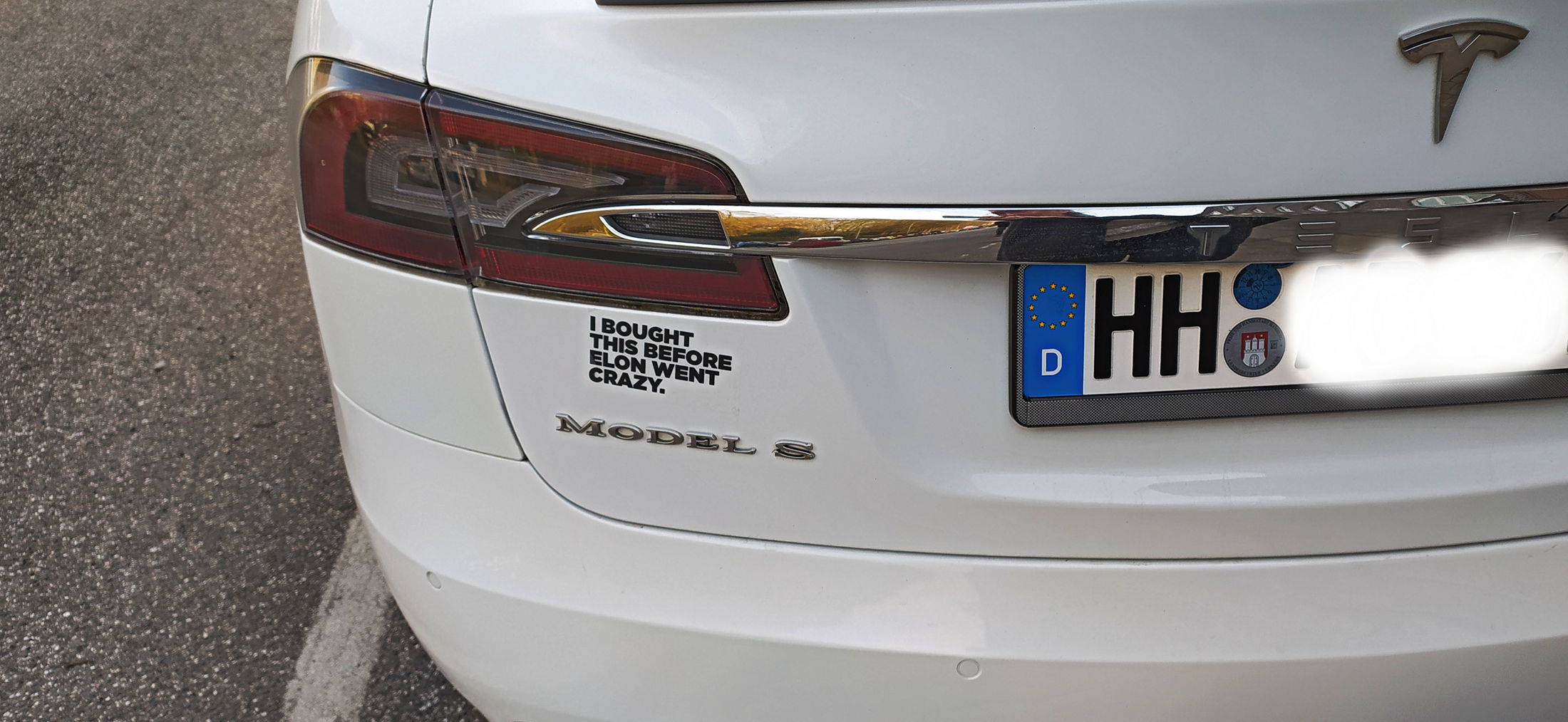10.2.25 ...Dat warrt schaneerlich Hüüt heff ik in Hamborg wat sehn, wat mi amüseert hett. Fröher weer ja en Tesla to fohren dat Coolste. De Tieden sünd apensichtlich vörbi, hebbt sik in't Gegendeel verkehrt: Dat is regelrecht pienlich. Düssen Opbacker sehg ik op en Tesla: "Ik heff dat köfft, ehrdat Elon dörknallt