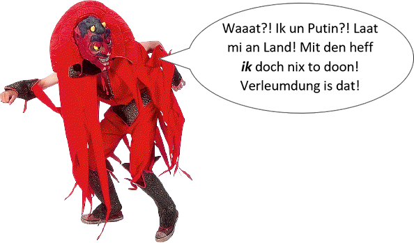 Bi 'n groten Deil von uns Zivilgesellschaft un nich blot bi dei Ollen, sonnern ok bi dei Jungen hürt dat Verständnis för dissen Ansichtenwannel up. Sei verståhn den Energiewannel up Düwel kåm rut nich, un sei verståhn nich, dat dei Wirtschaft nich vörwarts kümmt, dat 'n Milliarden för dei Ukrain verschwennen deit un wenig Geld för Krankenhüs un Schaulen hett, dat Düütschland inne Ogen von Frömde un Fule 'n Schlaraffenland is, dat 'n Selenskyj för den Weltenredder un Putin för den Düwel höllt.
