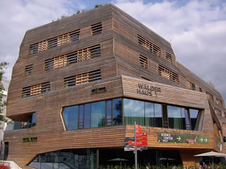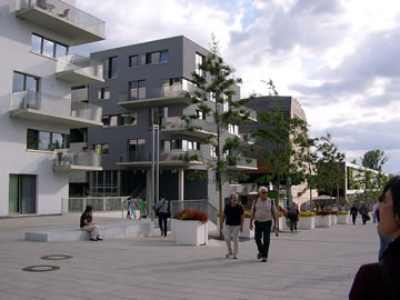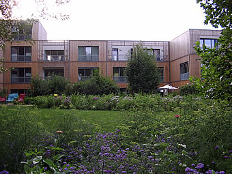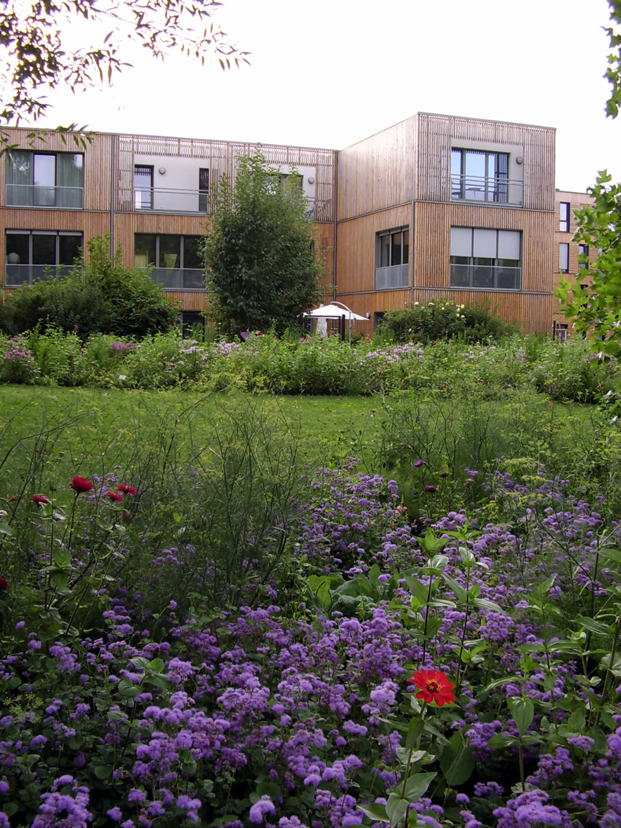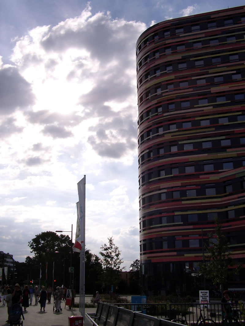 Glieks achter de S-Bahn Wilhelmsborg t.B., 'neem en Footgängerbrügg na dat IGA-Gelänn röverföhrt, steiht dat Hööfdhuus un Flaggschipp vun de IBA, de niege Behörde för Stadtentwicklung un Ümwelt. Dat Thema passt. De Foorm is ja ganz smuck, man de Klöören hebbt mi't nich andaan. Poppig op Düüsterbruun! Ok stückerwat anner Hüüs tekent sik sünnerlich dör ehr Klöörgestalten ut, nich dör de Foorms (vun buten). Mal Hellgröön, mal Geeltöön, mal bunt mi dücht, Klöör is dat aktuelle Stilelement.