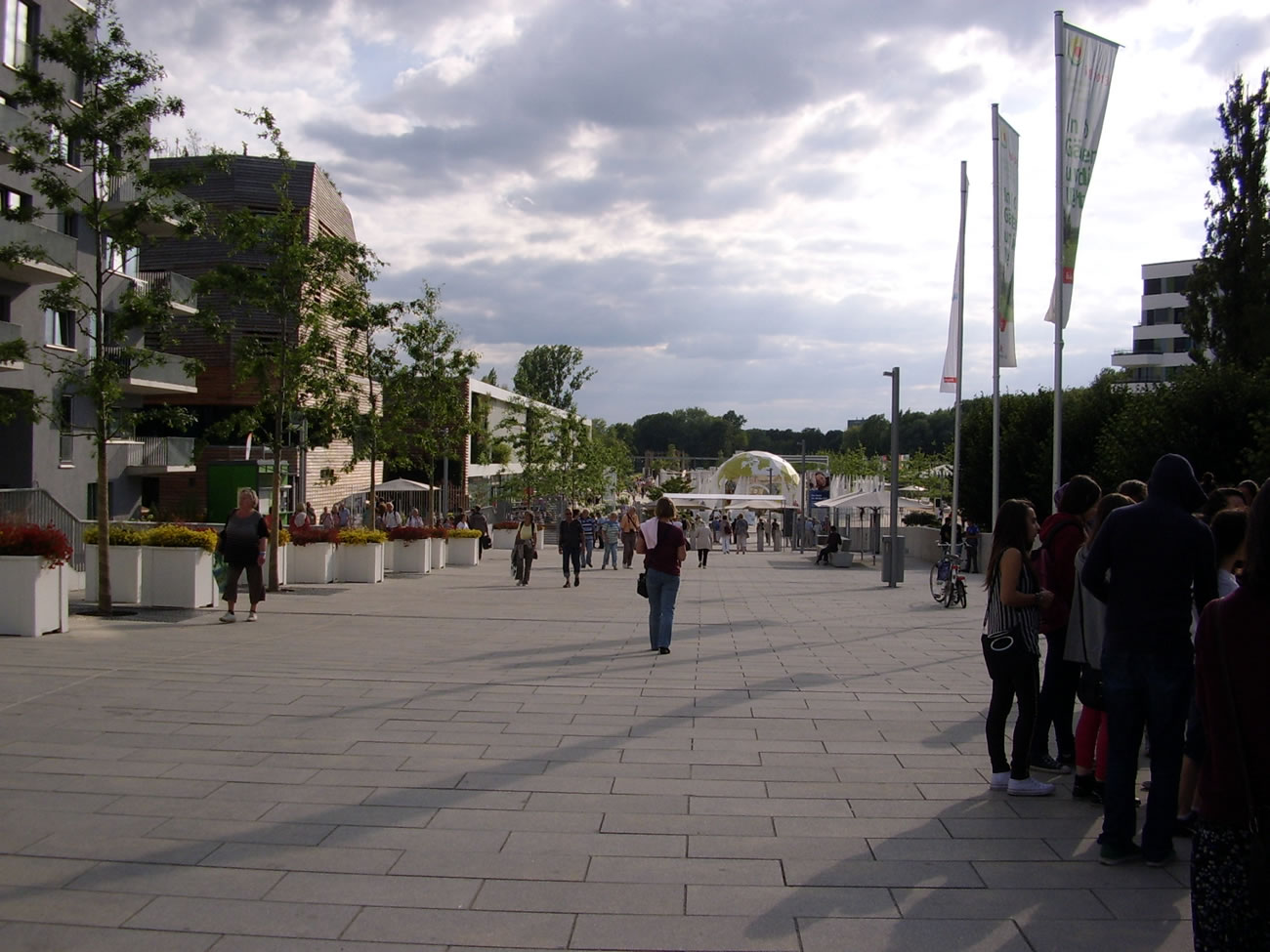 Glieks achter de Straat apent sik de grote Hööfd-Ass vun de IGA, de brede Weg, 'neem ok de "Welt vun de Havens" an liggt. Niege Wahnbuuten, deelwies vun de Bu-Utstelln, süümt den Weg. Ok IGA-Buwarken sünd dorbi, dat "Huus vun'e Woolden" un natüürlich de Blomenhalln, de hier platzeert sünd. Hier kannst ok lütte Elektromobile mieten, man wi sünd jung (äh, naja, ca. 50 Johr) un köönt locker 4 Stünnen rümmerlatschen.