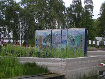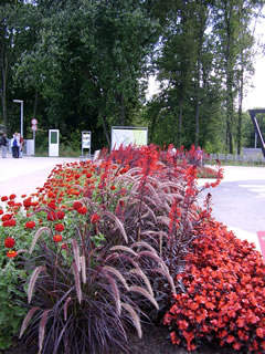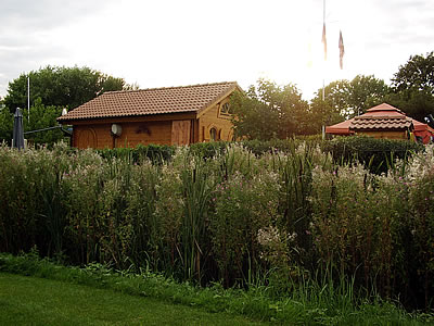 De Weg föhrt achter de Blomenhalln langs, de de Hööfdass eröffnen dään. Vun de Rüchsiet sünd düsse Halln Kladderwään, un wi kiekt en Stoot lang de letzten taagnackigen Kladderers to, de ok Klock negen noch togang sünd un doch jümmers wedder afstörten doot. Hier wiest sik wedder, wa Recht Helmut Kohl harr, as he sä: "Deutschland ist zu einem Freizeitpark geworden!" Wilhelmsborg nu ok! Denn sünd wi wedder an'n Utgang. De tachtig Goorns hebbt wi nich tellt, faken weern de Övergäng twüschen ehr ja ok nich to kennen, un nu sinkt de Sünn al deep över dat ganze Areaal. Wat blifft vun den Besöök? Op de een Siet meent wi beid, dat de Besöök sik lohnt hett, wieldat een dat sehn hebben schull; avers mehr as en Avendkoort wöörn wi nich köfft hebben wulln. Vun de ganze Anlaag her blifft so'n beten en duppelte Indruck: Wo de Planten wirklich to ehr Recht kemen, weer't schöön, man dat Ganze schien keen Konzept to hebben. Dat wirkt faken wat tosamenwörpelt, mennig kulturelle Themen woorn nalässig angahn, nich överall steiht de Plant un ehr Belange in'n Vörrergrund, nich mal dat Tosamenspeel vun Minsch un Plant. De Goornschau as Ganzes is mehr en Stadtentwicklungsprojekt as en Goornschau. De Goornschau woor sotoseggen as Feigenblatt bruukt wat ja ok en Verwendung för en Nüttplant is. Alltohoop hett mi de Buga in Schwerin dormalen beter gefulln. Mehr Plant, mehr Info, mehr Ästhetik. Man beid sünd wi mit en beten Bangigkeit beförchten, in teihn Johr warrst uns' Wilhelmsborg nich mehr wedderkennen. |