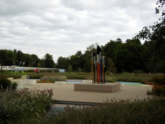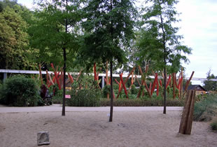 Wi gaht nu de letzte grote Ass hooch, trüch Richt Hööfdutgang. Dat is de "Welt vun'e Bewegen". Dat dücht uns, as weer düt hier mehr en Frietiedpark as en Goorn. De Plant steiht nich mehr in'n Vörrergrund, sünnern dat Speel in't Frie. De Sportreedschapen sünd originell orr, wenn se konventionell sünd, doch originell utstaffeert.