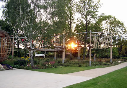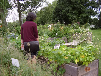Linkerhand liggt nu de "Kuckucksteich" achter Planten. Op Hoochbeete, de vun Holtsteeg ümlopen warrt, sünd Köken- un Nüttplanten vun Kinner to lütte Kökengoorns tosamenstellt un beschrifft woorn. Kohl un scharpe Schoten wahnt hier freedvull blangenanner, överwokert vun Krüder.
