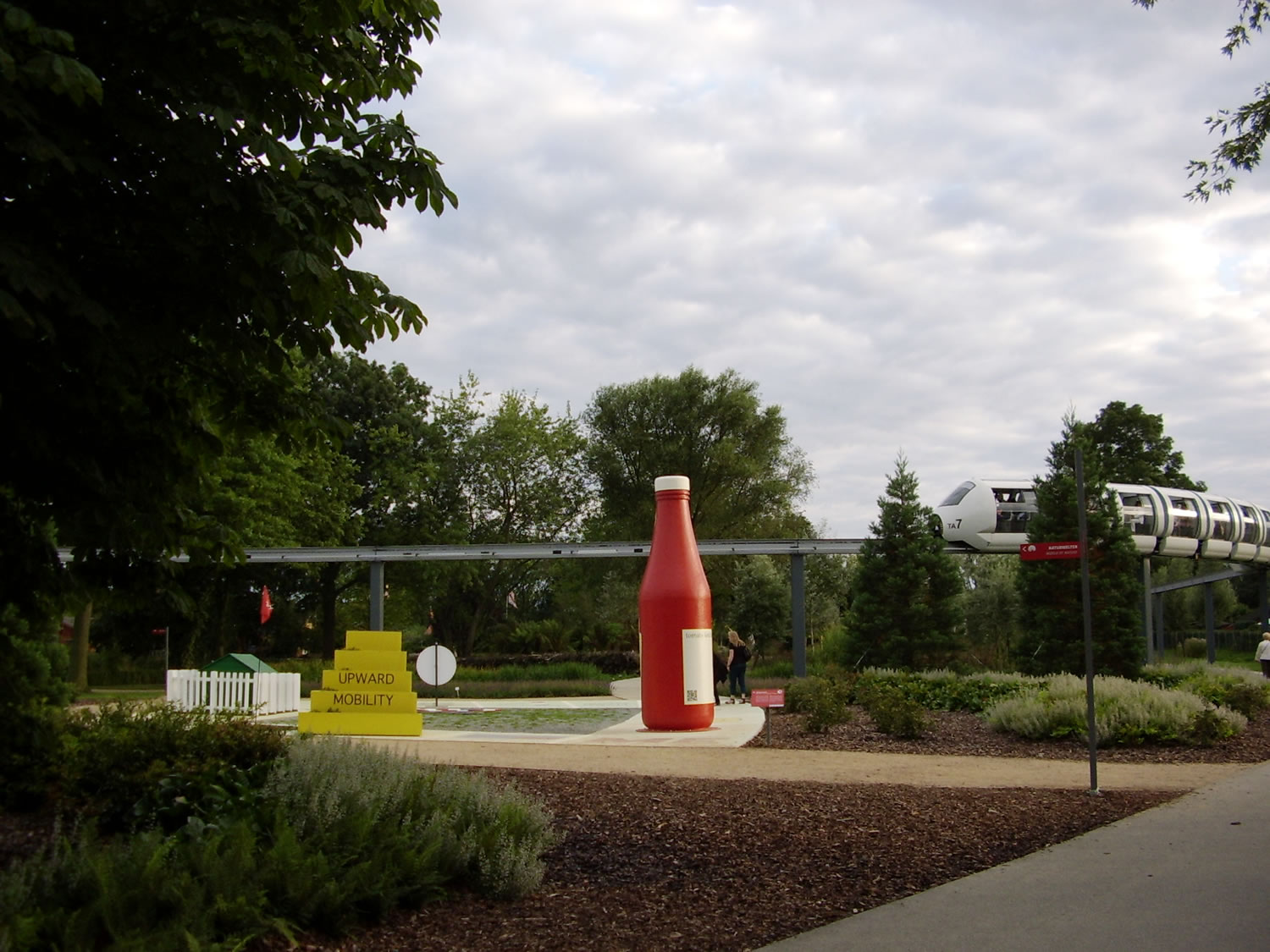 De Weg föhrt nu trüch na den "Knüttenpunkt" dör stückerwat originelle Watergoorns. Linkerhand löppt de Monorail-Bahn, hier is de Noord-Statschoon. (Monorail heet: dat hett man bloots een Schiene.) Dor muttst extra betahlen, wi schenkt uns dat (in'n Sinn vun: Wi laat dat na). Staht avers orrig wat Lüüd för an. In'n Achtergrund gifft dat een Goorn, 'neem denn un wenn en Geysir hoochgeiht, en Waterfontäne, de man bloots tweemaal speet un denn wedder en ganze Tied wegblifft. Twüschendörch kiekt wi uns de annern Goorns an, un dreemaal speet de Fontäne, man ik schaff dat nich, jüst den Momang to knipsen.